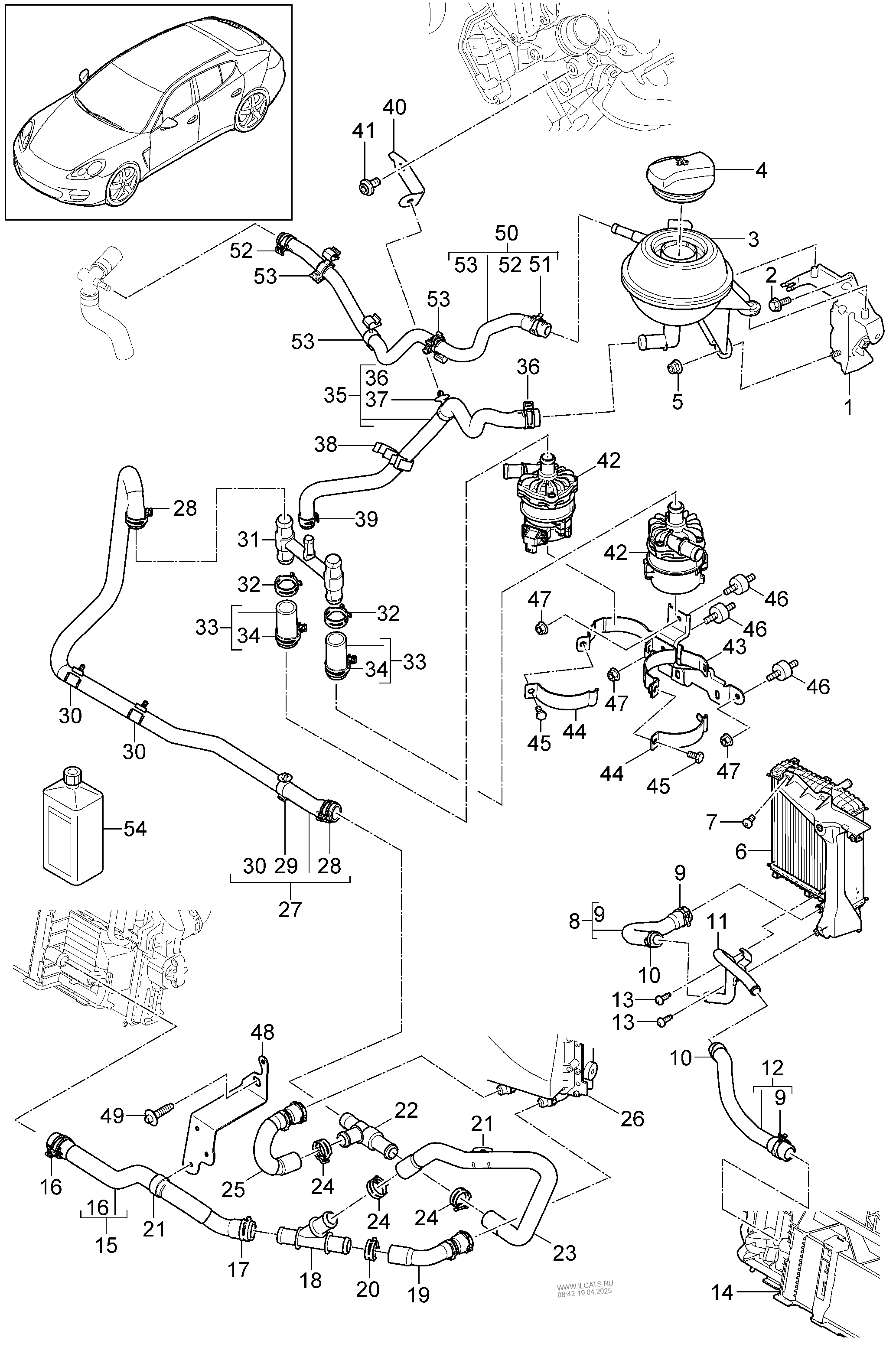 Mniej więcej tak wygląda układ chłodzenia w przodu: https://images.ilcats.ru/getImage.php?c ... 4b55527e7dNumer 26 na powyższej grafice to jest to co Porsche nazywa w katalogu: Power and control electronics for electric drive. Miałem kilka razy do czynienia z hybrydą, ale nigdy z napędem, więc szczególnie nie szukałem, ale wygląda jakby (z uwagi na krótkie przewody chłodzenia do niego idące) był z lewej strony. Być może nie ma tam nawiewu i jest właśnie zaślepka. Na tej grafice numer 1: http://68c485fd633f2800b573-cf856d65853 ... 901-21.gifJeżeli sam będziesz kompletował i składał auto, to wydrukuj sobie najpierw z katalogu PET który wyżej podlinkował Eclipser (są też w wersji angielskiej) wszystkie strony z Twoim silnikiem i przodem (mogę Ci rozkodować vin) z Twoimi opcjami i najpierw sprawdź co masz a czego nie masz. Niektóre części są na tyle drogie i są dostępne tylko na wymianę jako nowe (lub dopłata kaucji w przypadku braku starej części). Może się okazać, że trzeba będzie szukać drugiej hybrydy rozbitej tyłem, żeby się ekonomicznie opłacało.